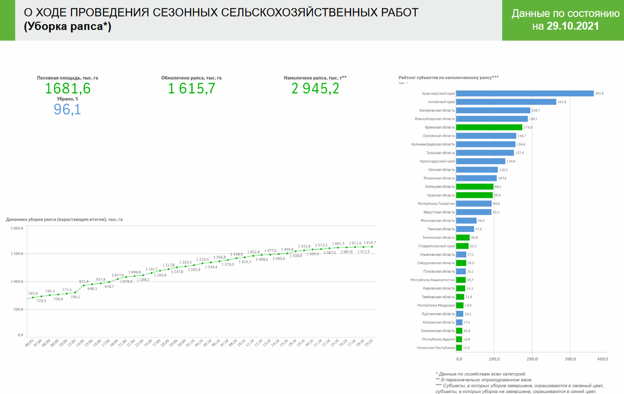 Еженедельный бюллетень о состоянии АПК на 29 октября