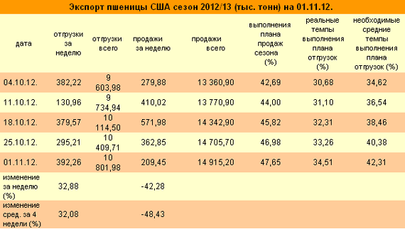 Ожидания относительно недельных экспортных продаж американской пшеницы находились в диапазоне 350-550 тыс. тонн. Однако реальность оказалась куда суровее. Объем, проданный на экспорт за неделю на 01 ноября, оказался самым низким с начала текущего сезона. И это, несмотря на то, что в первые дни «отчетной» недели цены на американскую пшеницу снижались.