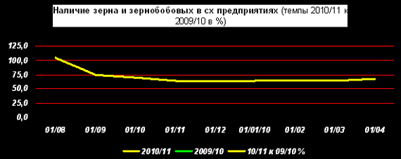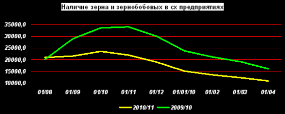 Подробно все данные по реализации и по запасам зерновых и масличных в сельхозпредприятиях на 01 апреля 2011г. по областям РФ см. здесь