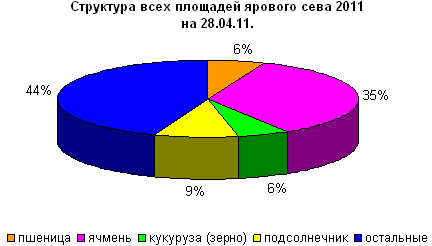 Подробные (по областям РФ) данные сева яровых культур и подкормки озимых на 28 апреля 2011г. см. ПРЯМО СЕЙЧАС в разделе сайта ЗЕРНО Он-Лайн – ЗЕРНОСТАТ / Ход сева и уборки / Ход сева / Сев весна 2011