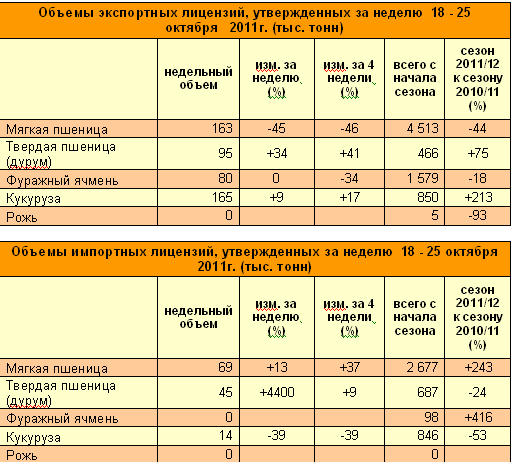 В конце октября экспортный спрос на европейскую мягкую пшеницу существенно снизился, что объясняется с появлением на рынке еще одного мощного игрока из причерноморского региона – Украины (после отмены экспортных пошлин). Также невысок спрос на фуражный ячмень.