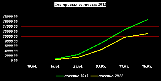 В России на 16 мая, по данным МСХ РФ, посеяно яровых зерновых на 16885,6 тыс. га, что почти на 52% больше, чем на аналогичную дату прошлого года.