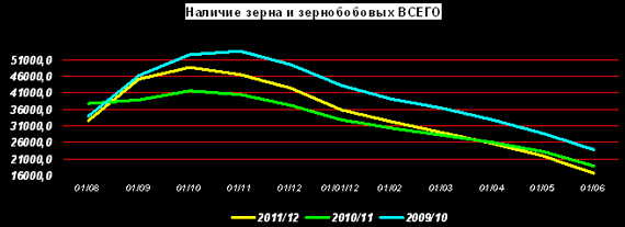 Подробно (по регионам) все данные по реализации и по запасам зерновых и масличных на 01 июня 2012г. по областям РФ см. здесь