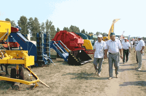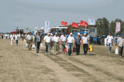Вдоль демонстрационного поля организации-производители техники и их региональные дилеры выставили трактора, комбайны, сеялки, косилки, жатки и другие машины и сельхозагрегаты. Вся экспозиция, более восьмидесяти единиц техники и оборудования заняла больше километра.