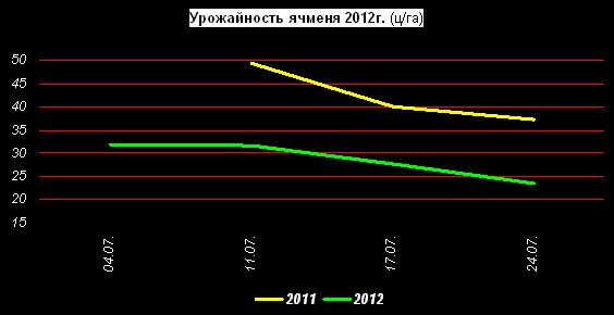 Намолот зерновых и зернобобовых на 24 июня составил 22930,4 тыс. тонн, что лишь на 0,53% больше, чем на аналогичную дату прошлого года. Средняя урожайность составила 23,3 ц/га (35,2 ц/га в 2011г.).