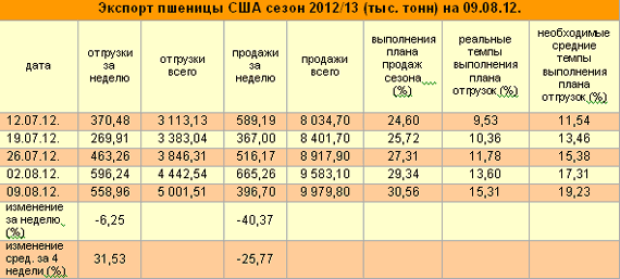 Экспортная неделя совпала с периодом возобновления роста биржевых котировок, с 02 по 09 августа котировки пшеницы SRW в Чикаго выросли на 17,63 $/тонна. И вот результат.
