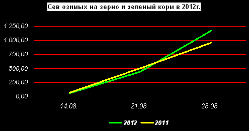 Подробные (по областям РФ) данные сева озимых культур на зерно и зеленый корм на 28 августа 2012г. см. ЗДЕСЬ