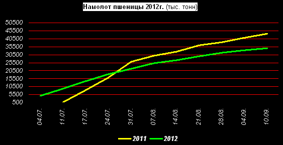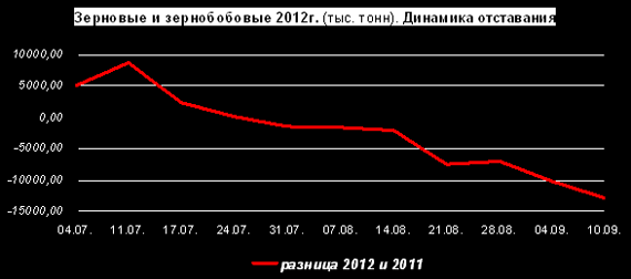 Подробные (по областям РФ) данные уборки урожая зерновых и зернобобовых культур на 10 сентября 2012г. см. ПРЯМО СЕЙЧАС