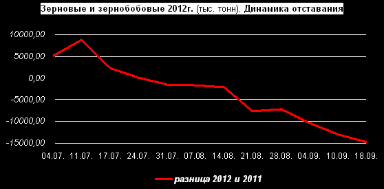 Подробные (по областям РФ) данные уборки урожая зерновых и зернобобовых культур на 18 сентября 2012г. см. ПРЯМО СЕЙЧАС