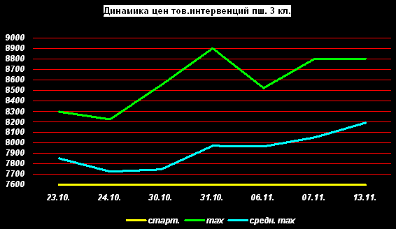 В частности, было реализовано 50,895 тыс. тонн пшеницы 3 класса на сумму 419,9 млн.руб. и 12,42 тыс. тонн пшеницы 4 класса на сумму 100,3 млн.руб.