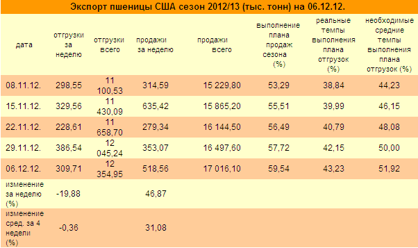 Экспортная неделя 30 ноября – 05 декабря пришлась на период ослабления котировок фьючерсов американской пшеницы на биржах США.