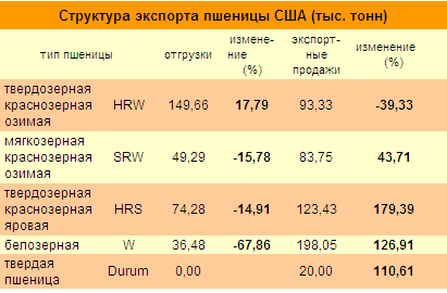 Главными покупателями пшеницы на неделе стали: Египет (183 000 тонн), Япония (162 500), Таиланд (45 100), Южная Корея (41 100), неназванный покупатель (31 500), Турция (20 000) и Мексика (18 100). От ранее законтрактованной пшеницы отказались: Доминиканская Республика (4 600 тонн), Перу (3 000), Венесуэла (1 200) и Нигерия (1 000).