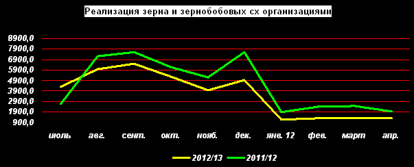 За апрель 2013г. сельхозорганизации РФ, по данным Росстата, реализовали 1,32 млн. тонн зерна. Это лишь на 1,2% меньше, чем было реализовано за март (в прошлом году помесячное снижение было 19,2%).