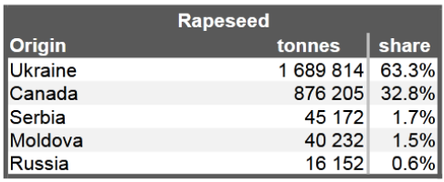 Это может ударить по европейскому рынку, который является основным направлением украинского рапса, куда Украина обычно экспортирует 85-95% от общего объема. Украинский рапс очень важен для баланса ЕС, так как европейские страны закупают около половины своего общего объема импорта рапса из Украины за последние два сезона.