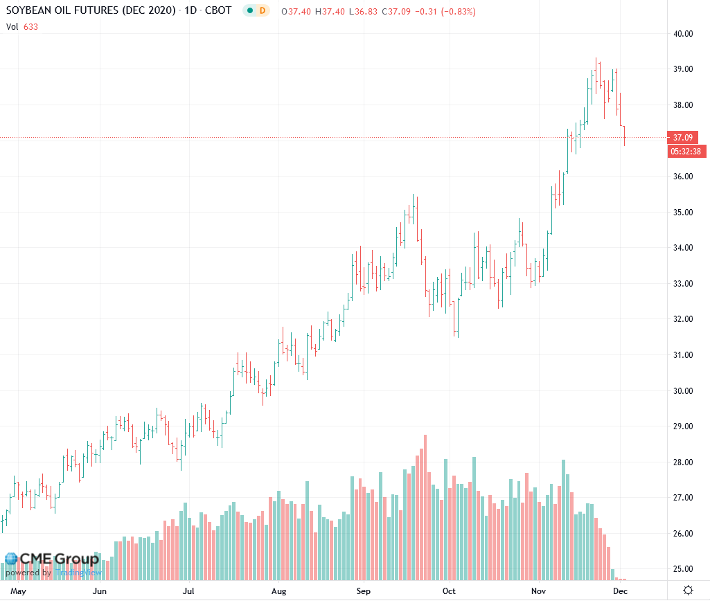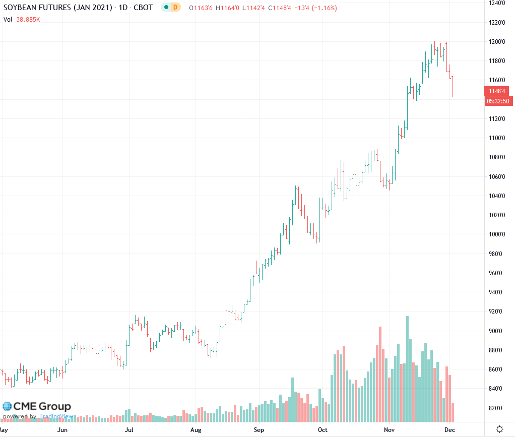Январские контракты на сою, соевое масло и шрот тестируют уровни середины ноября. Как пишет Рейтер, основные продавцы активно продавали контракты из-за улучшения погодных условий для урожая сои в Бразилии и Аргентине сообщает oilworld.ru.