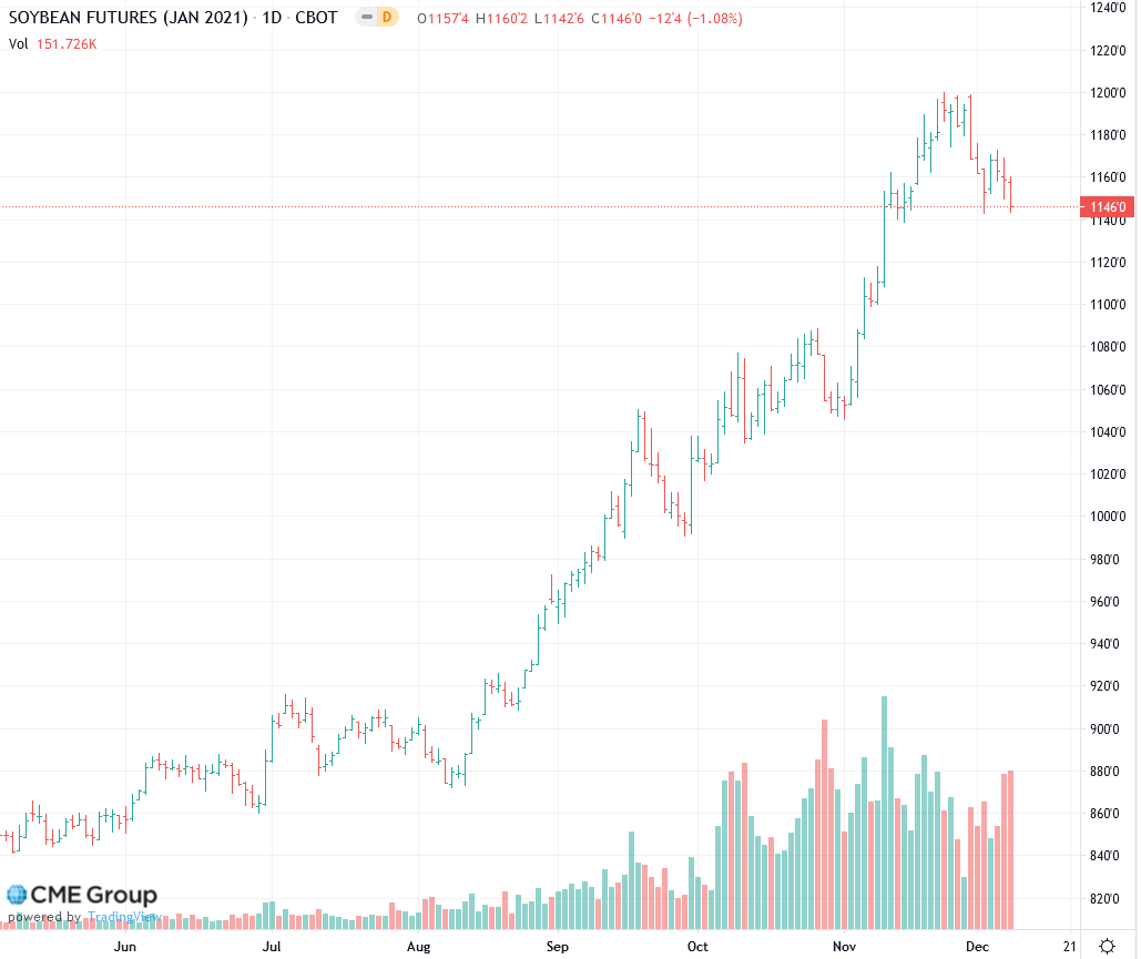 В последние недели цены на зерно поднялись до многомесячных или многолетних максимумов из-за высокого спроса, особенно со стороны Китая, и сокращения поставок. Сухая погода также угрожала урожаю Бразилии и Аргентины, запасы сои которого должны пополниться в ближайшие месяцы.
