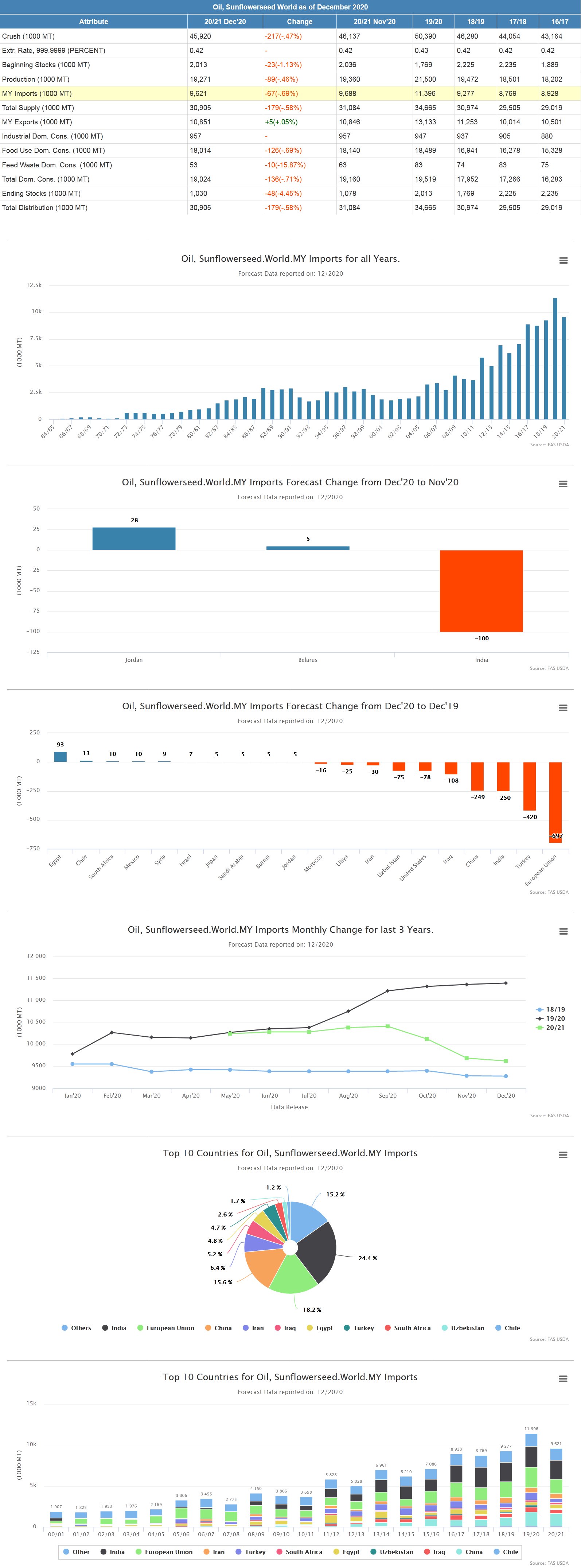 Прогноз импорта подсолнечного масла сокращается на 100000 тонн в связи с ограниченными мировыми поставками и дополнительным пальмовым маслом на рынке. Ожидается, что спрос на растительное масло восстановится при условии улучшение экономики в 2021 году, поскольку влияние COVID-19 со временем уменьшается.