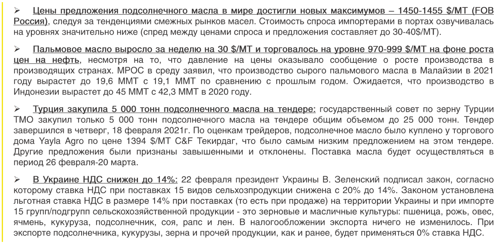 01.03.21 В МЭР допустили введение экспортной пошлины на подсолнечное масло