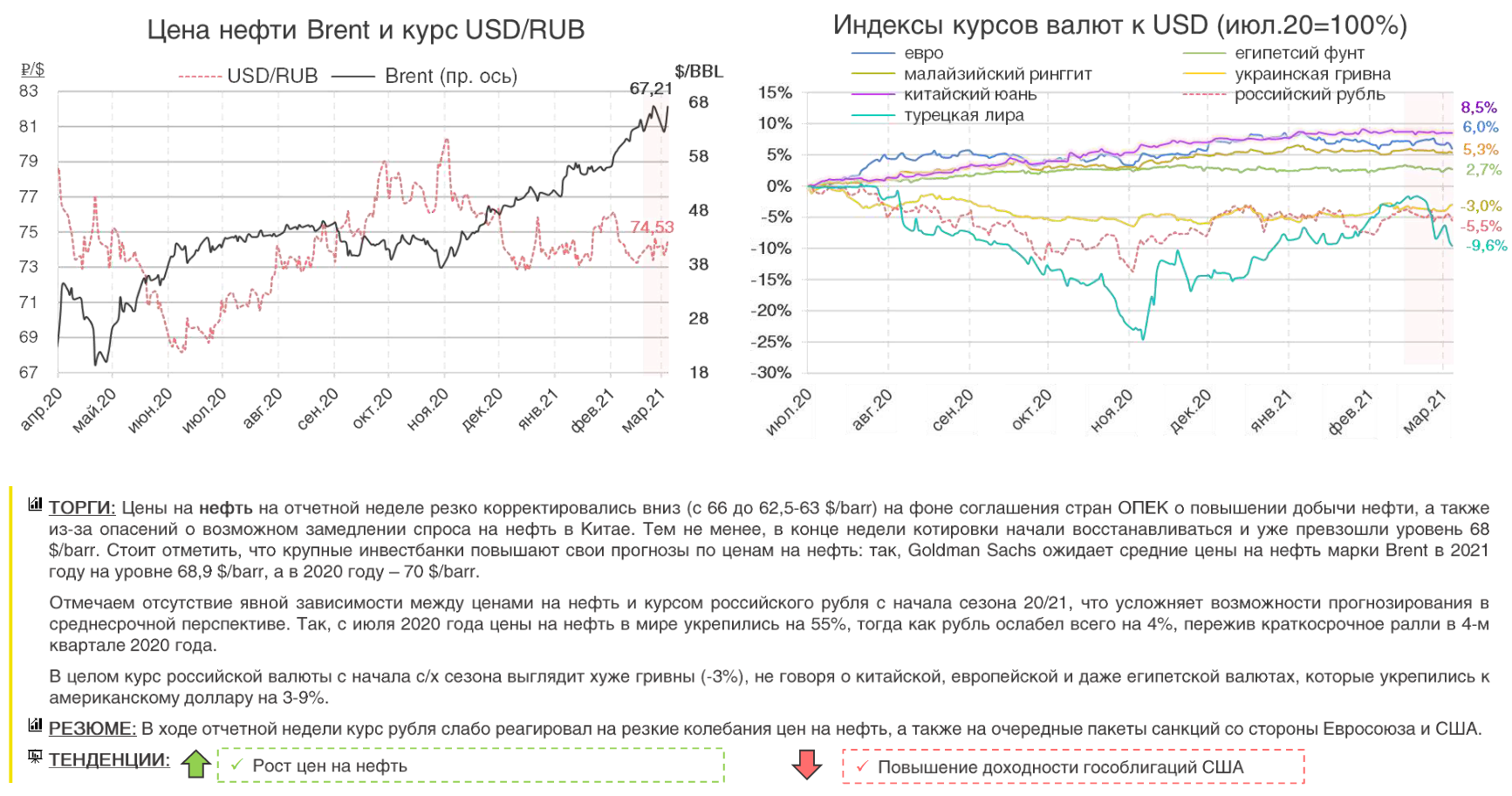 - Цены на нефть марки Brend возросли до максимума с января 2020 года, преодолев отметку в 68 $/барр. Этот фактор