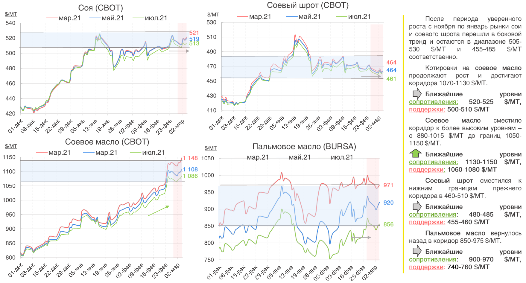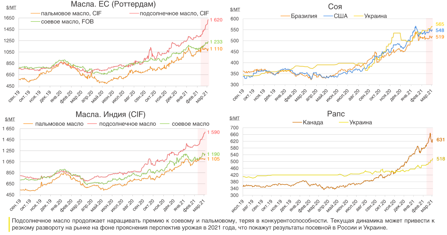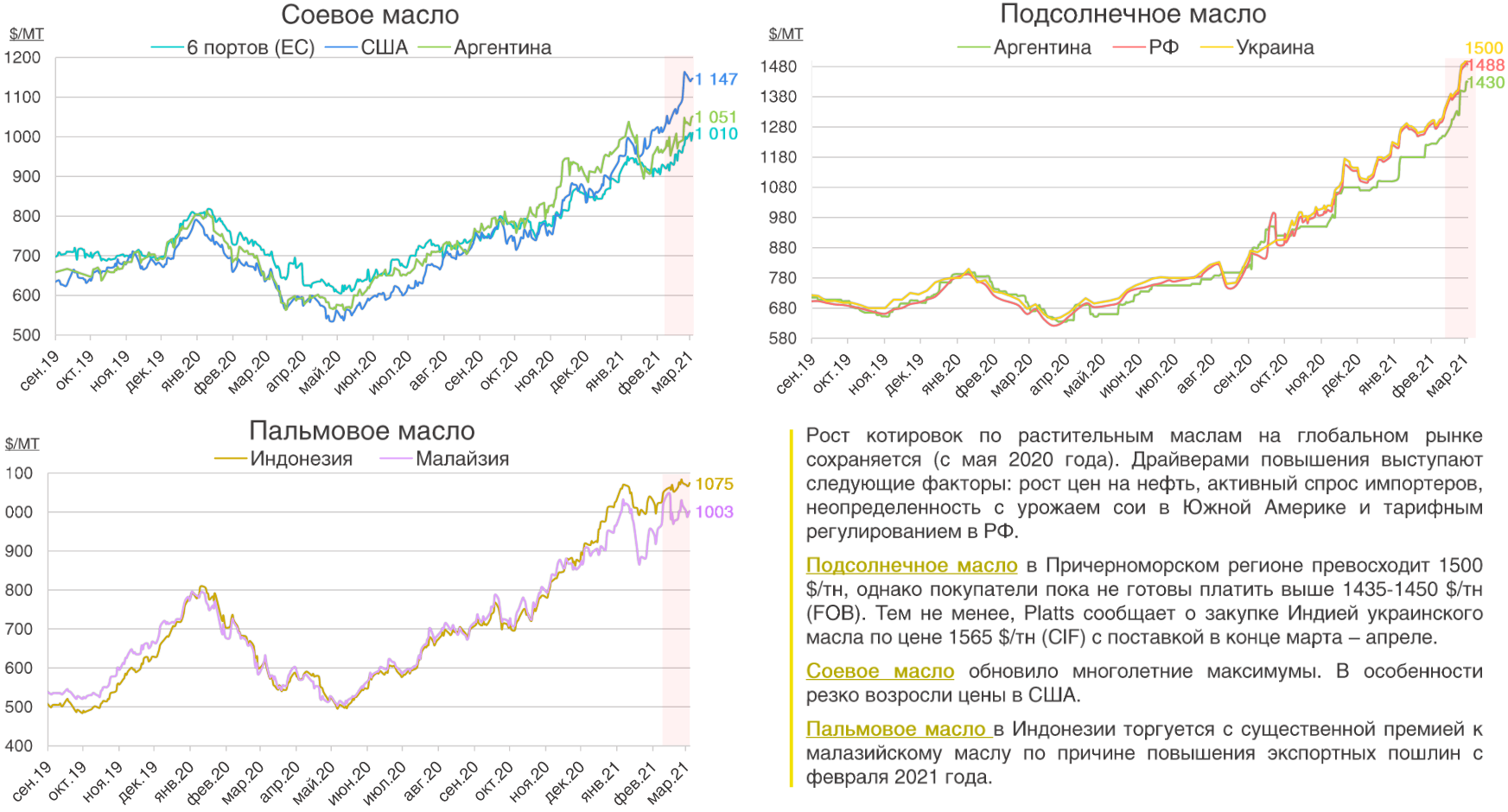 - Соевое масло в мире также обновляет рекордный уровень текущего сезона и торгуется на максимуме с июня 2013 года —