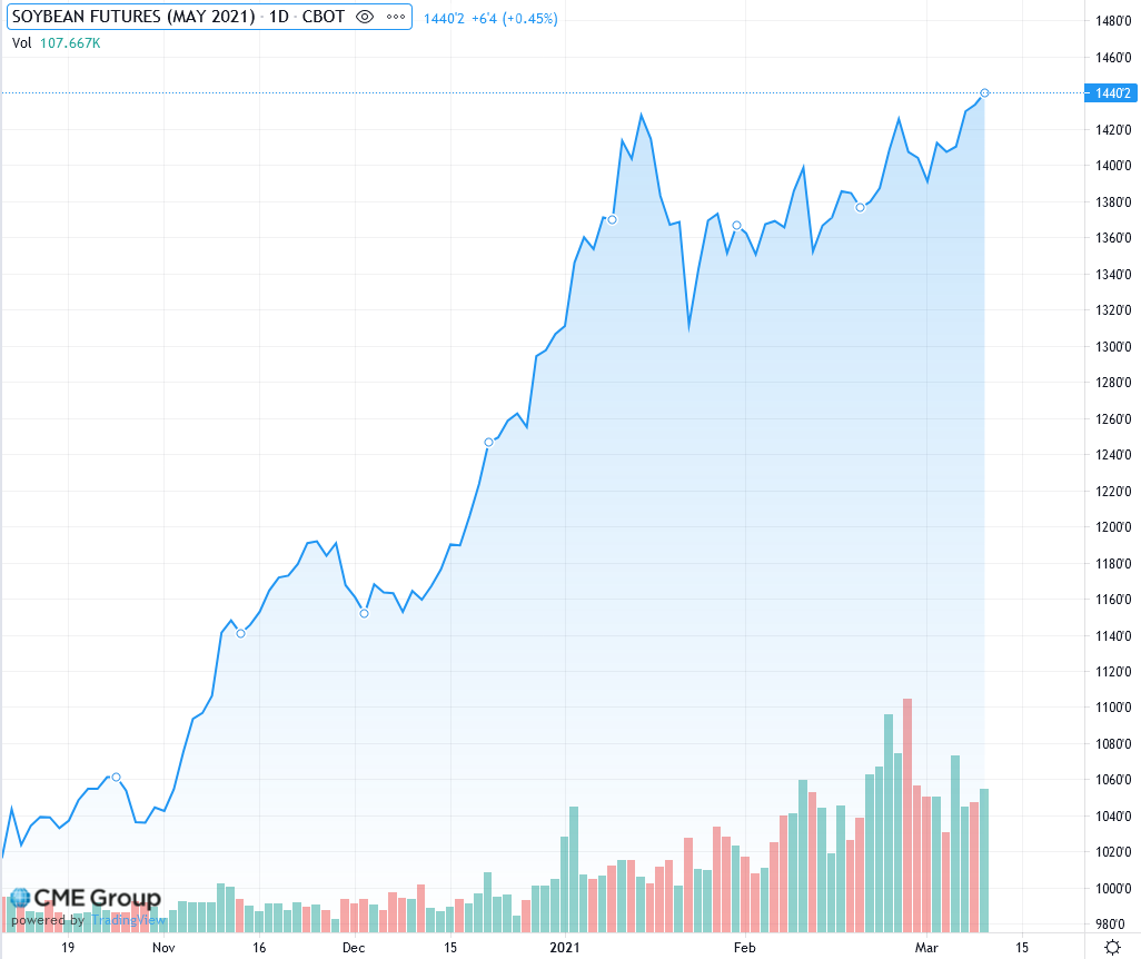 Первоначально фьючерсы на сою CBOT упали после выхода отчета, отчасти из-за того, что USDA повысило свой прогноз урожая сои в Бразилии в 2019/20 и 2020/21 годах. Но рынок вырос, поскольку трейдеры считали, что запасы сои в США и без того сокращаются, также сокращаются мировые поставки растительного масла.