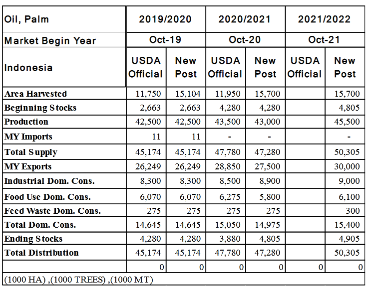 Ожидается, что благоприятная погода, более широкое использование удобрений и рост цен подтолкнут производство и экспорт пальмового масла Индонезии к рекордным уровням в 2021/22 году сообщает oilworld.ru со ссылкой на USDA
