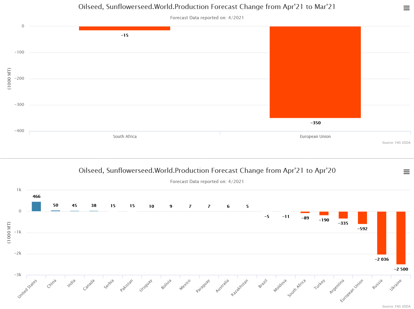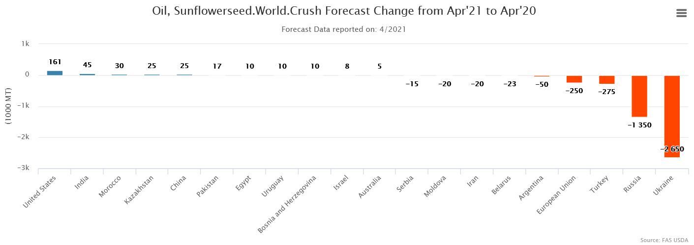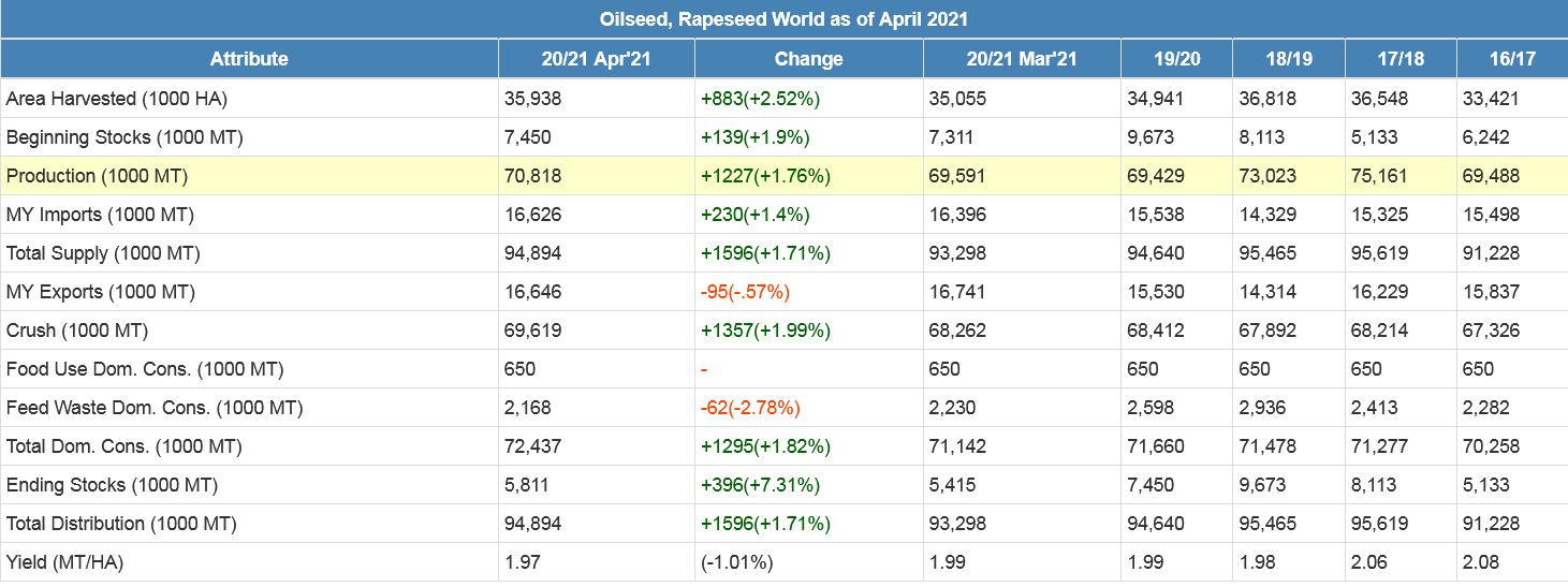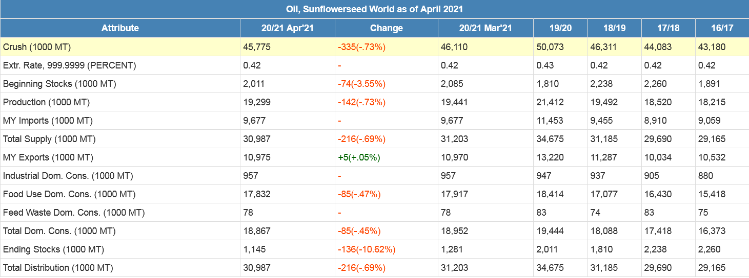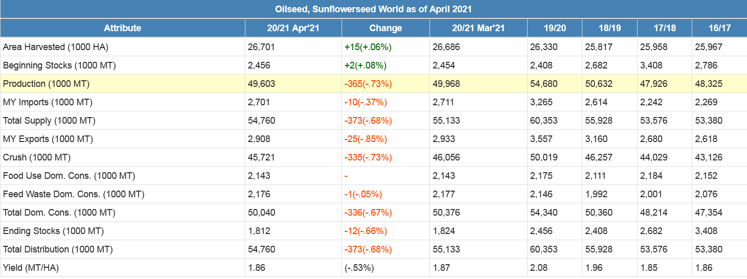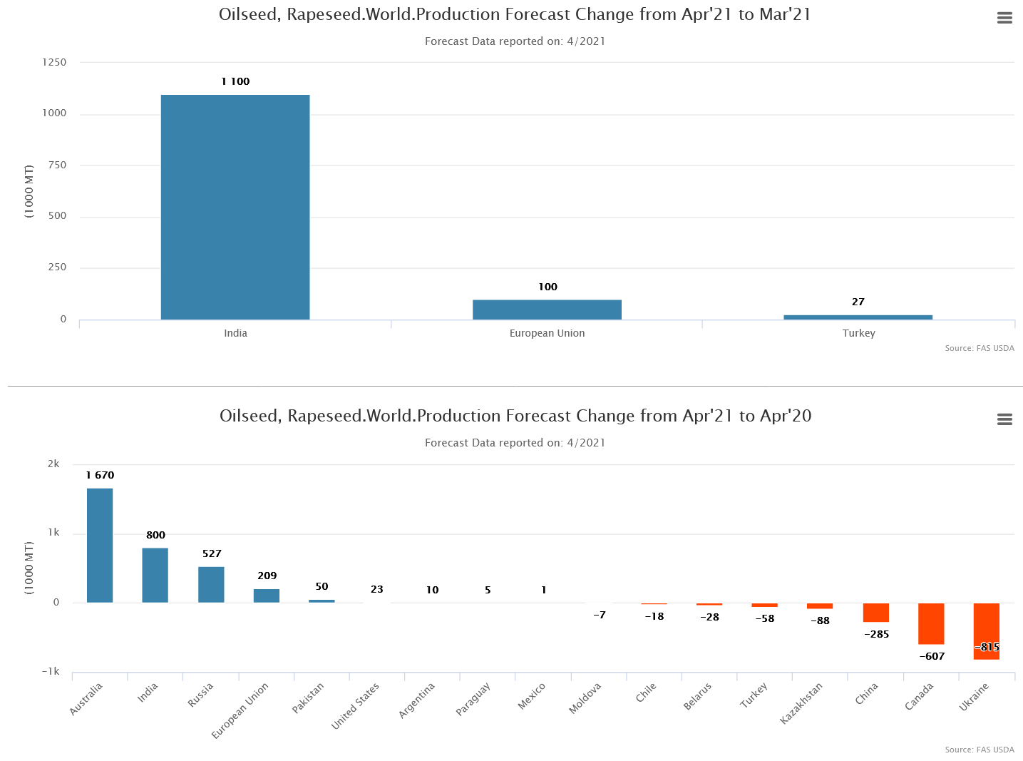 Производство рапса выросло более чем на 1 миллион тонн в основном за счет более крупного урожая в Индии. Урожай подсолнечника снизился на 370 000 тонн в основном из-за сокращений в ЕС и России сообщает oilworld.ru со ссылкой на USDA..