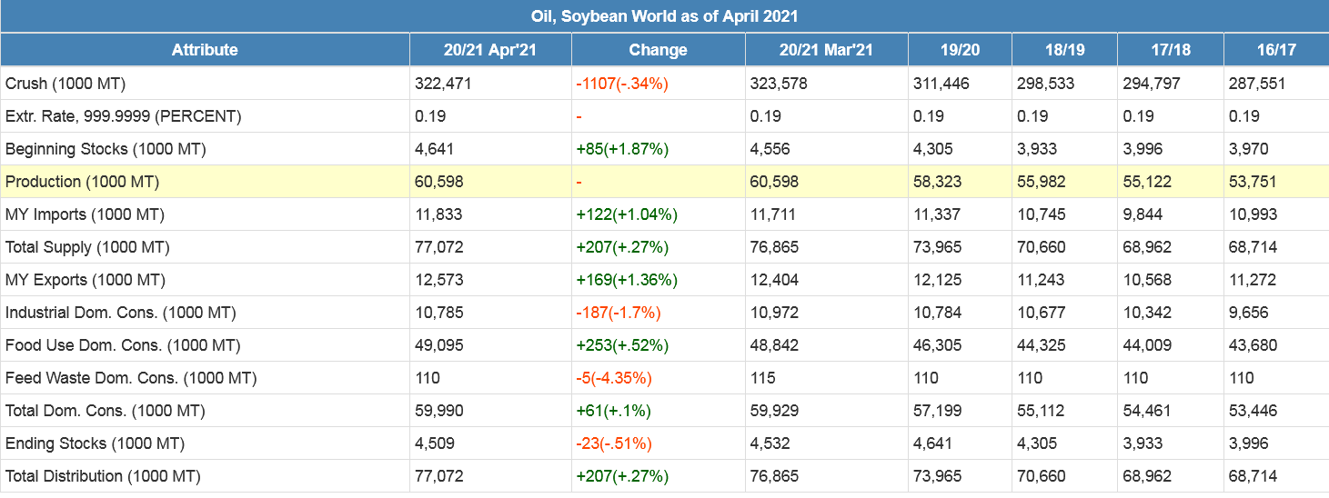 Глобальное производство масличных культур на 2020/21 год прогнозируется на уровне 598 миллионов тонн, что более чем на 2 миллиона тонн больше, чем в марте.