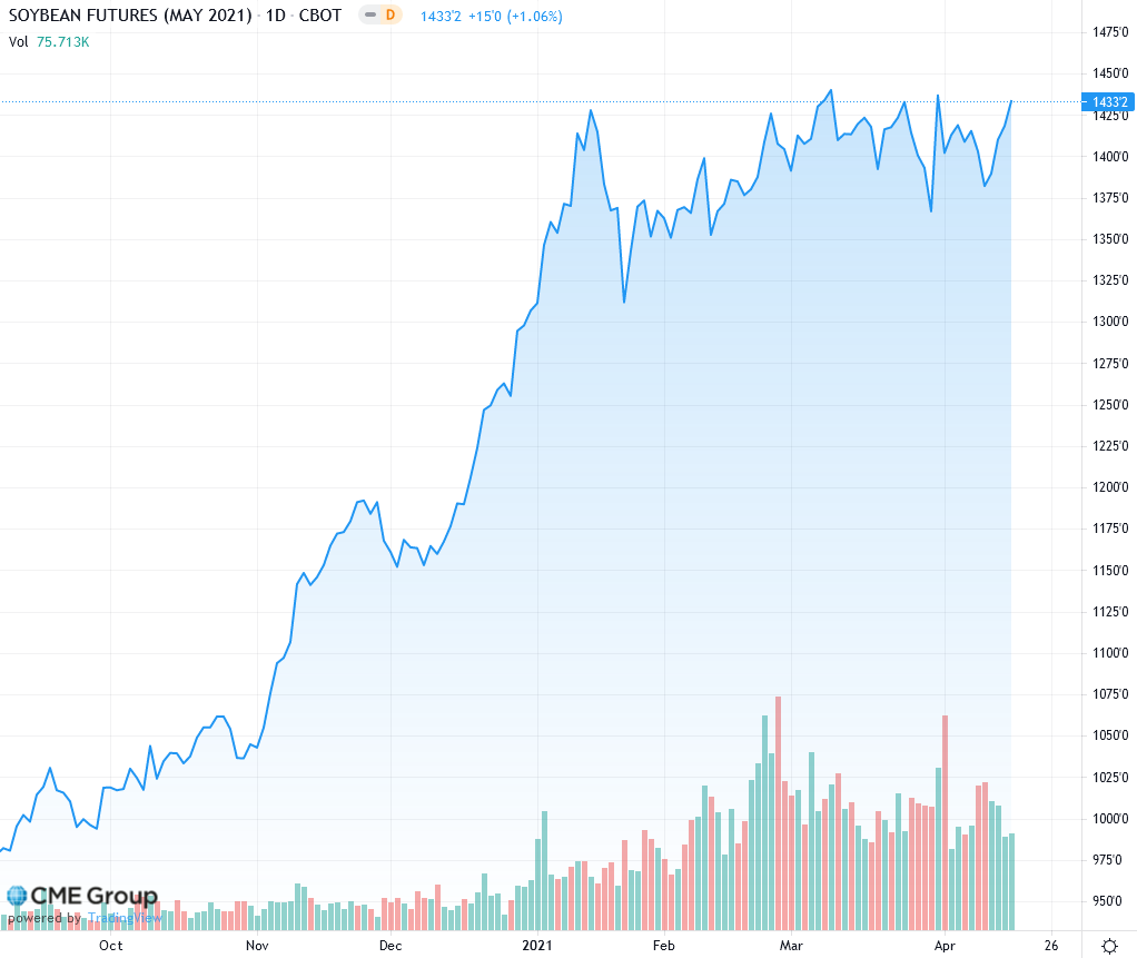 16.04.21 Котировки сои на CBOT выросли до недельного максимума