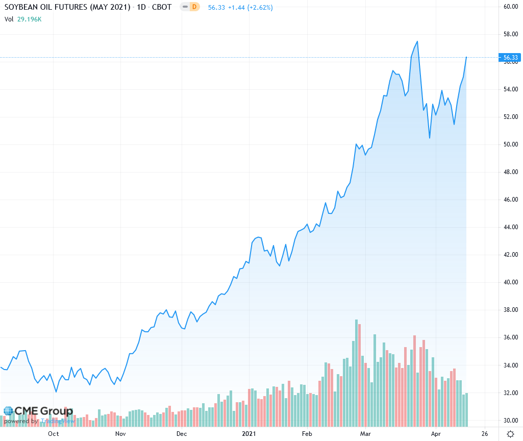 15.04.21 Котировки соевого масла на бирже в Чикаго продолжают расти
