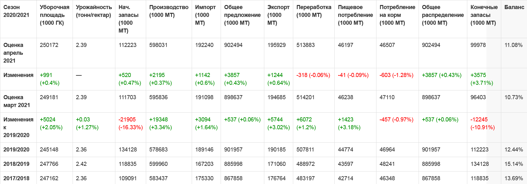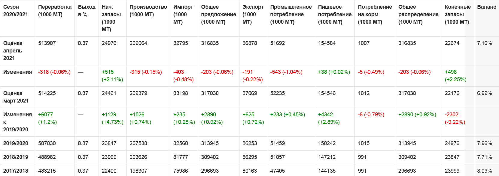 12.04.21 Обзор USDA апрель 2021 - основные моменты