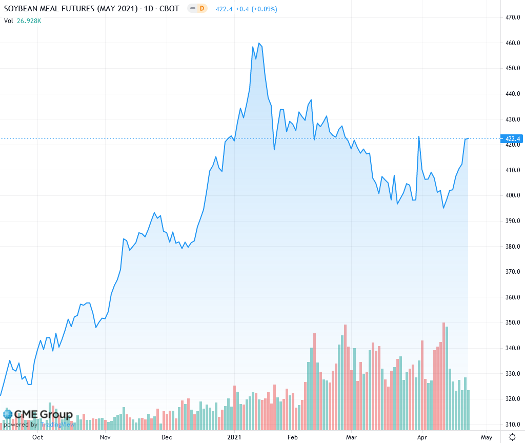 23.04.21 Соевые бобы и масло к середине апреля выросли, а шрот опять снизился