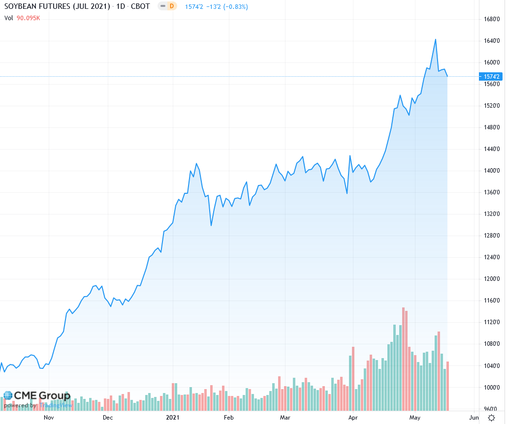 Июльские фьючерсы на сою CBOT упали на 13-1 / 4 цента до 15,74-1 / 4 доллара за бушель, опустившись ниже 10-дневной скользящей средней впервые за пять недель сообщает oilworld.ru со ссылкой на Рейтер.