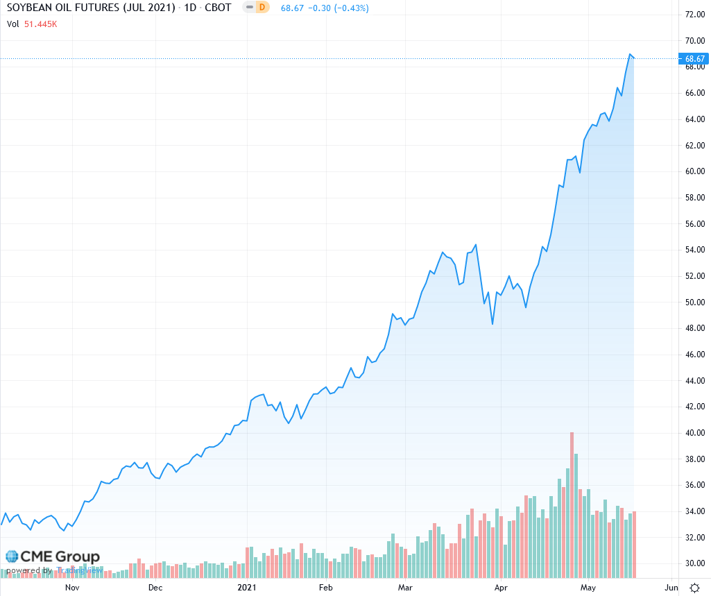 Ближайшие контракты на сою упали до минимума с 7 мая. По мнинию аналитиков, на котировки оказало влияние снижение цен на нефть и воскресные данные Министерства сельского хозяйства США, что сев сои был завершен на 61%, что выше прогнозов аналитиков в 60%.