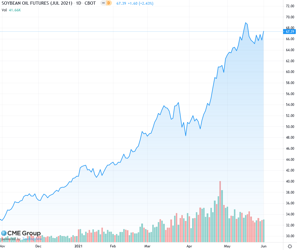 28.05.21 CBOT. Котировки сои выросли, несмотря на в целом благоприятную для урожая на Среднем Западе США погоду