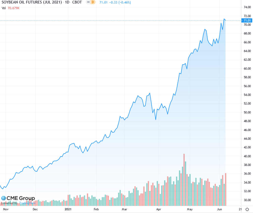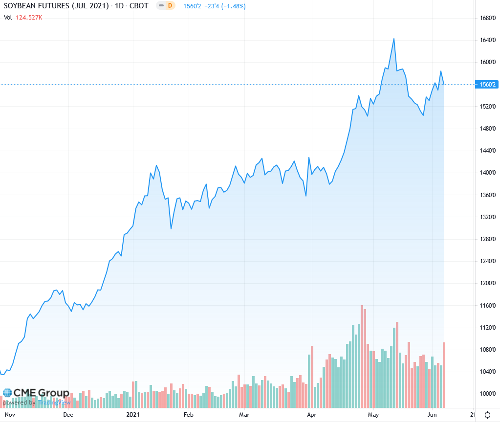Наиболее активные фьючерсные контракты на кукурузу и сою достигли максимума с середины мая во время ночных торгов, прежде чем резко упали. Фьючерсы на соевое масло в одночасье достигли максимума за всю историю, но наиболее активные контракты завершились снижением из-за фиксации прибыли.