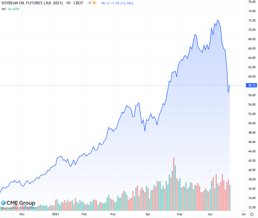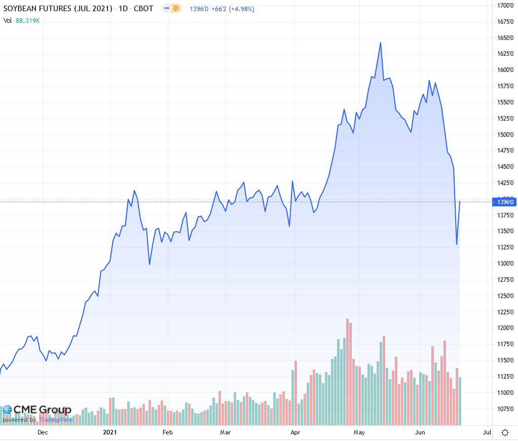 18.06.21 Котировки на соевые бобы и масло в Чикаго за день обвалились на 9%