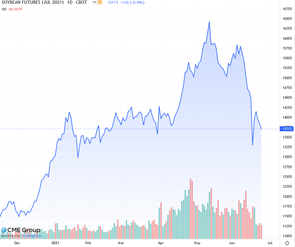 22.06.21 CBOT. Дожди принесли облегчение посевам сои в США