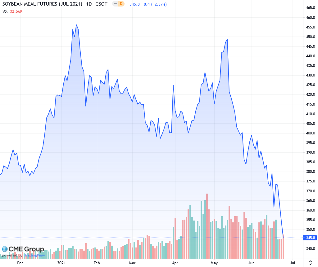 CBOT. Фьючерсы на соевый шрот снижаются вслед за котировками на свинину