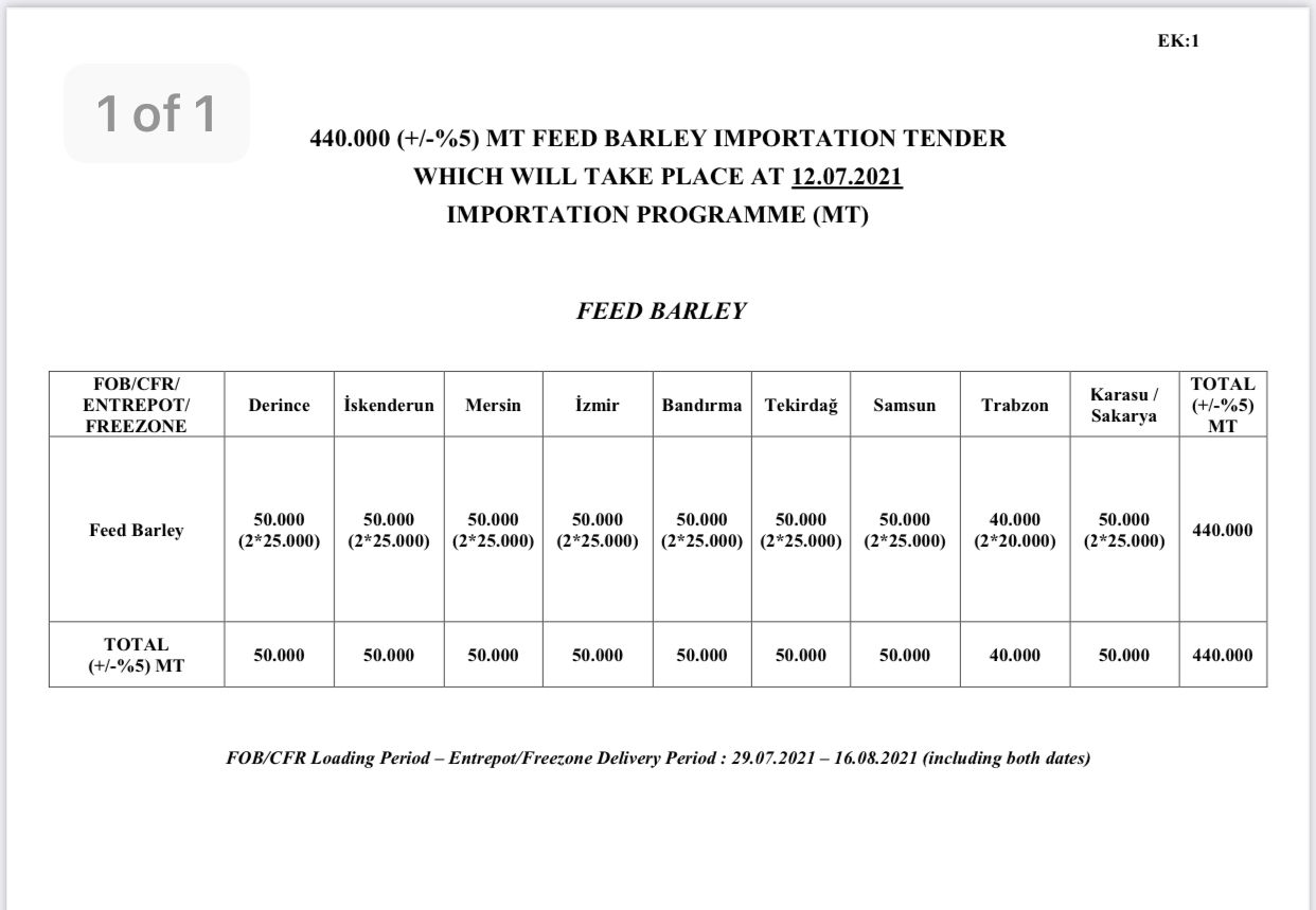 Зерновое агентство Турции (ТМО) объявило международный тендер по закупке 440 тыс. тонн фуражного ячменя произвольного происхождения. Сообщает агентство Зерно Он-Лайн со ссылкой на европейских трейдеров.