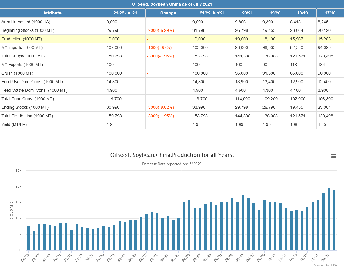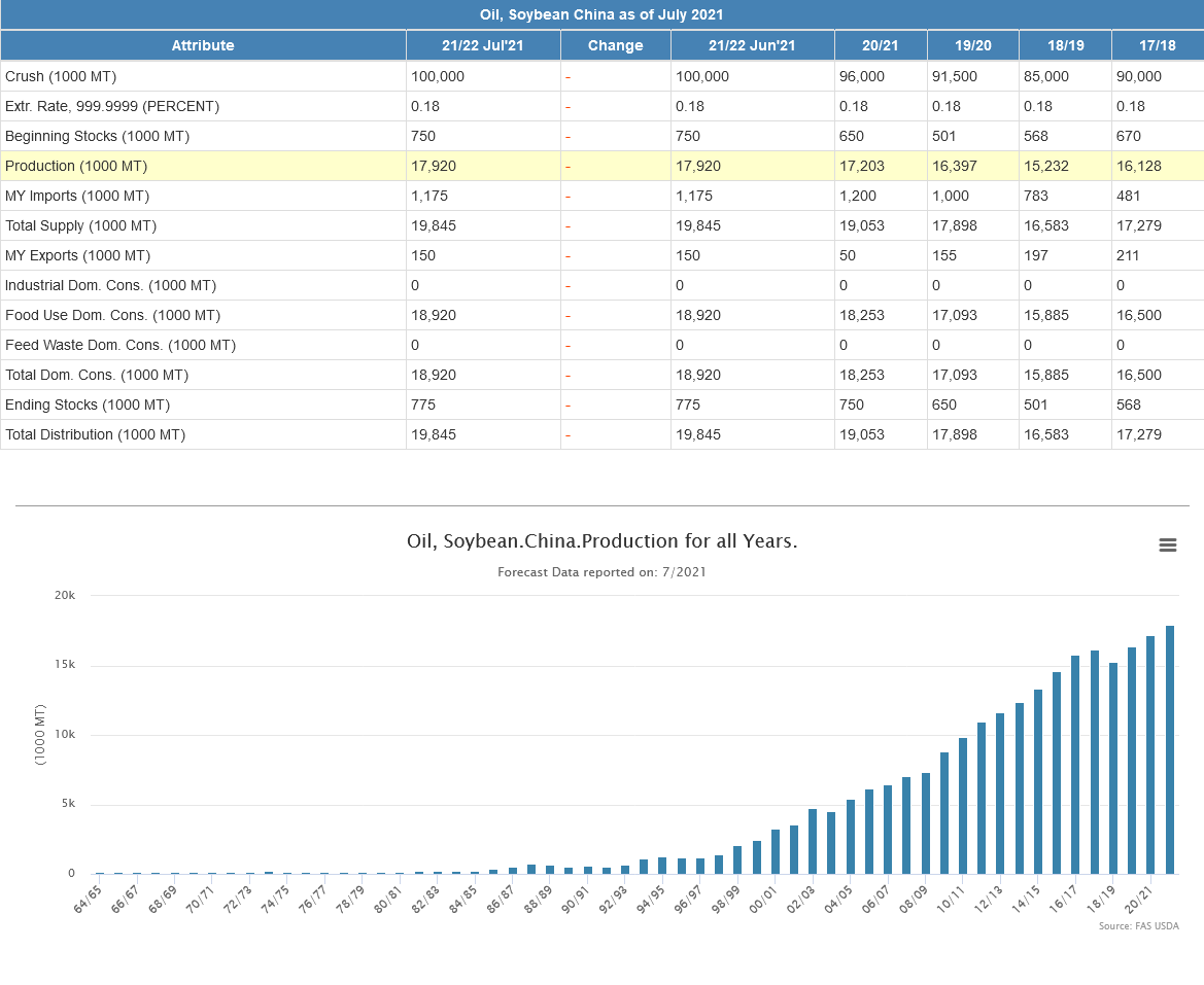 USDA, оценки производства соевого масла и соевых бобов в Китае (июль)