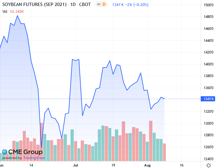 04.08.21 CBOT. Фьючерсы на сою в США упали во вторник на новостях о погоде и COVID