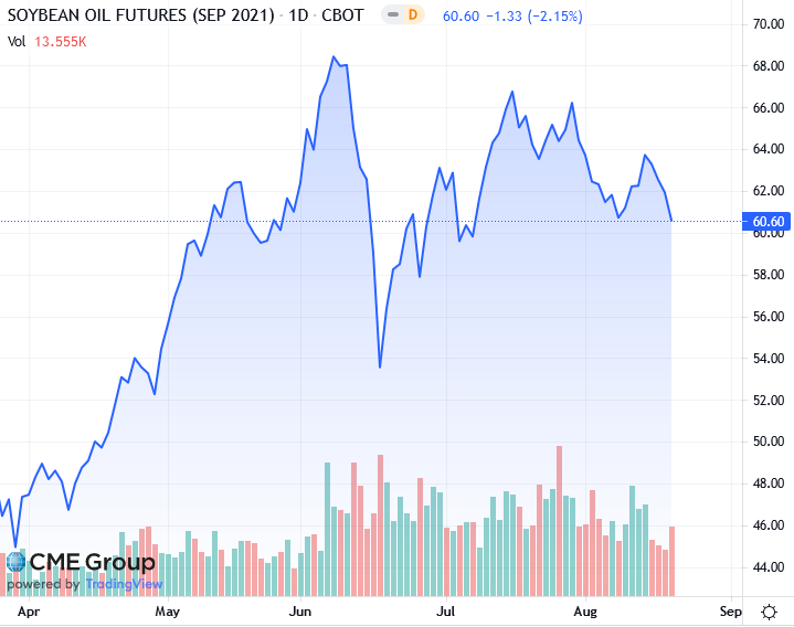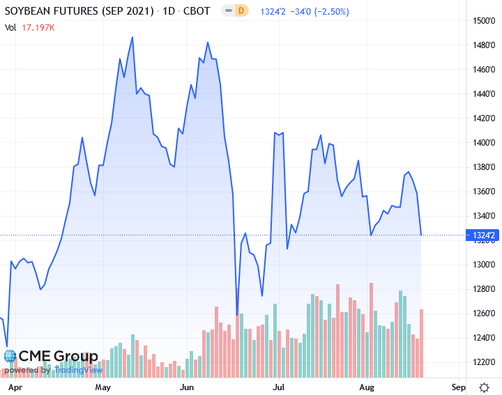 Фьючерсы на сою в США упали примерно на 2,5% в четверг после значительного снижения цен на сырьевые товары, включая сырую нефть, связанные с опасениями по поводу замедления роста мировой экономики, считают аналитики. Давление также было вызвано прогнозами дождей в северо-западной части Среднего Запада, которые могут улучшить перспективы производства, особенно сои сообщает oilworld.ru.
