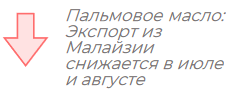 • Пальмовое масло в Куала-Лумпуре снизилось на 6$/МТ и торгуется на уровне 1063 $/МТ из-за падения экспорта в июле и первой половине августа. По данным сюрвейеров, экспорт из Малайзии в первой половине августа упал на 23% в сравнении с первой половиной июля. Также, по информации участников рынка, в июле снизились импортные отгрузки в Индию на 43% по сравнению с предыдущим месяцем - до 466 ТМТ.