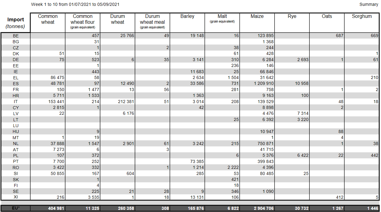 07.07.21 Евросоюз: в сезоне 2020/21 главным импортером мягкой пшеницы стал Алжир, а фуражного ячменя – Китай