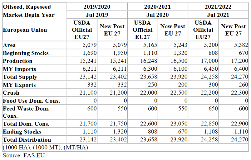 03.08.21 Производство масличных в ЕС по-прежнему ожидается на высоком уровне в сезоне-2021/22