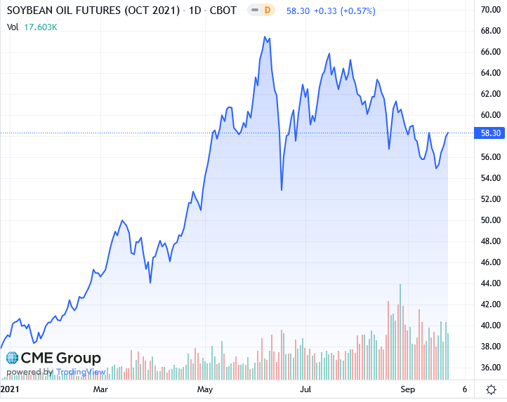 Спрос на соевое масло для пищевых целей восстанавливается после снижения из-за пандемии, но его использование в биодизеле сокращается, особенно в Соединенных Штатах, сказал Фрай.