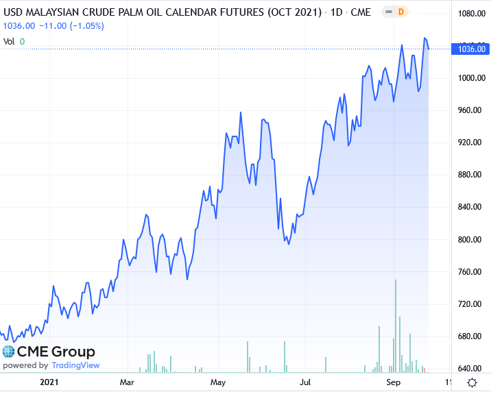 Контракт на сырое пальмовое масло FCPOc3 (КОД Рейтерс) вырос в этом году почти на четверть, увеличиваясь третий год подряд, поскольку вызванная пандемией нехватка рабочей силы привела к сокращению производства в Малайзии, втором по величине производителе в мире.