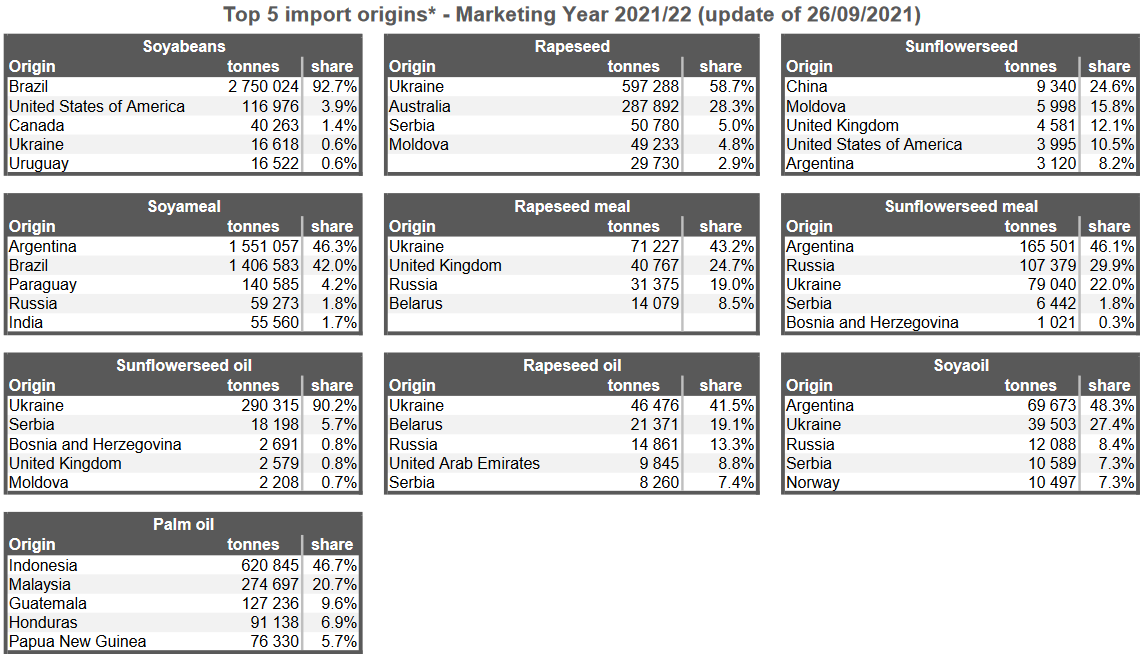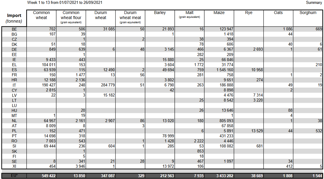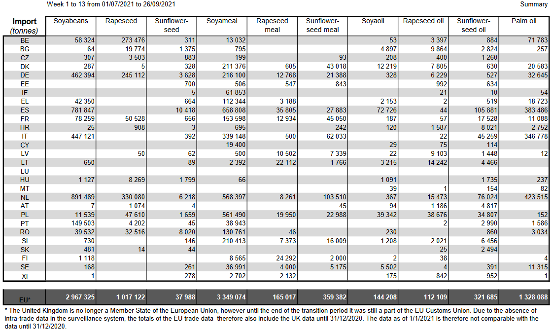 ЕС. Импорт - экспорт зерновых, масличных, растительного масла, шрота. Оперативные данные на 26.09.2021