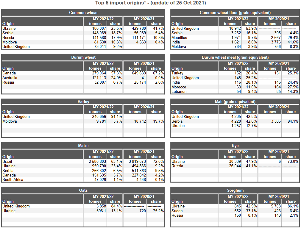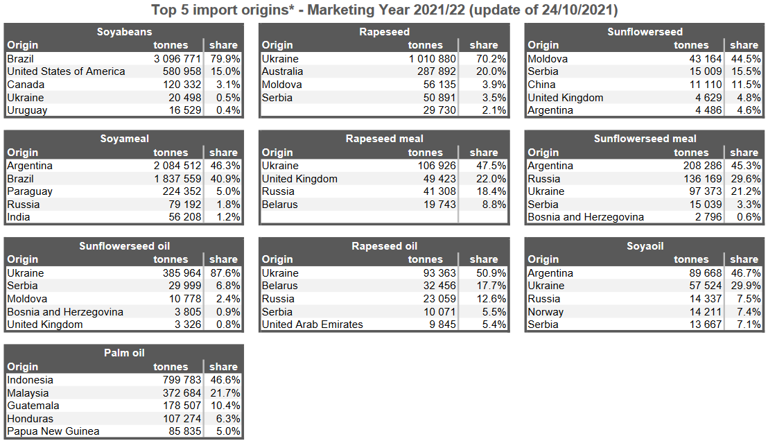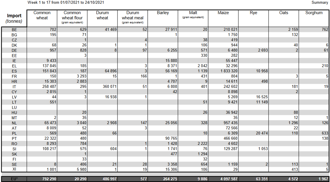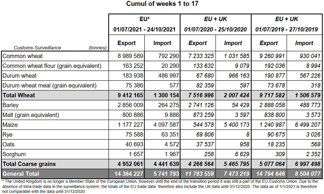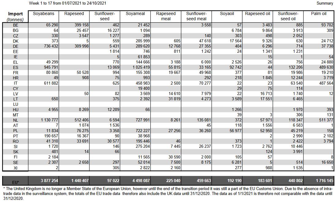 20.10.21 ЕС. Импорт - экспорт зерновых, масличных, растительного масла, шрота. Оперативные данные на 17.10.2021